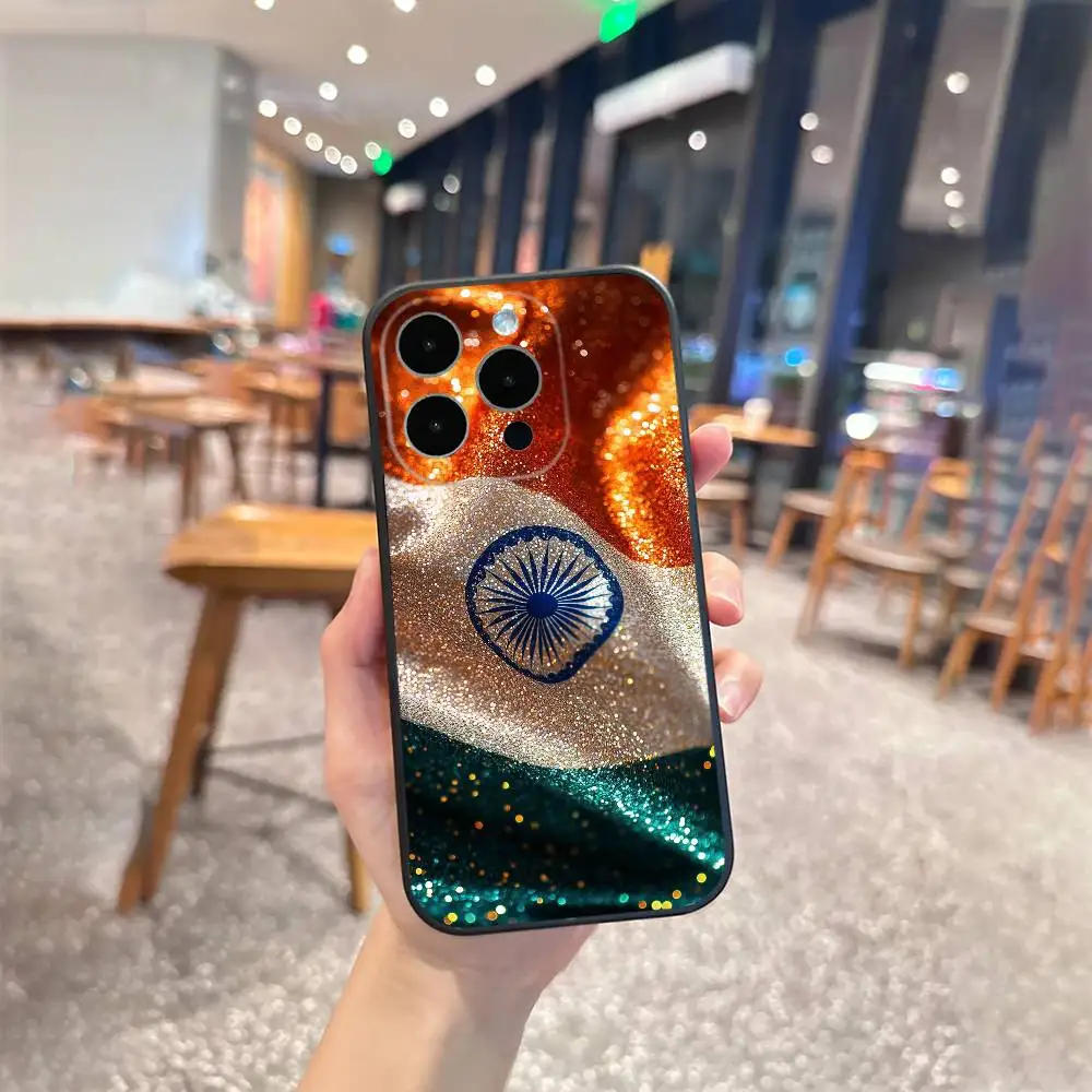 India Flag Phone Case - Soft Silicone Black Cover for iPhone 12–17 Plus & Max