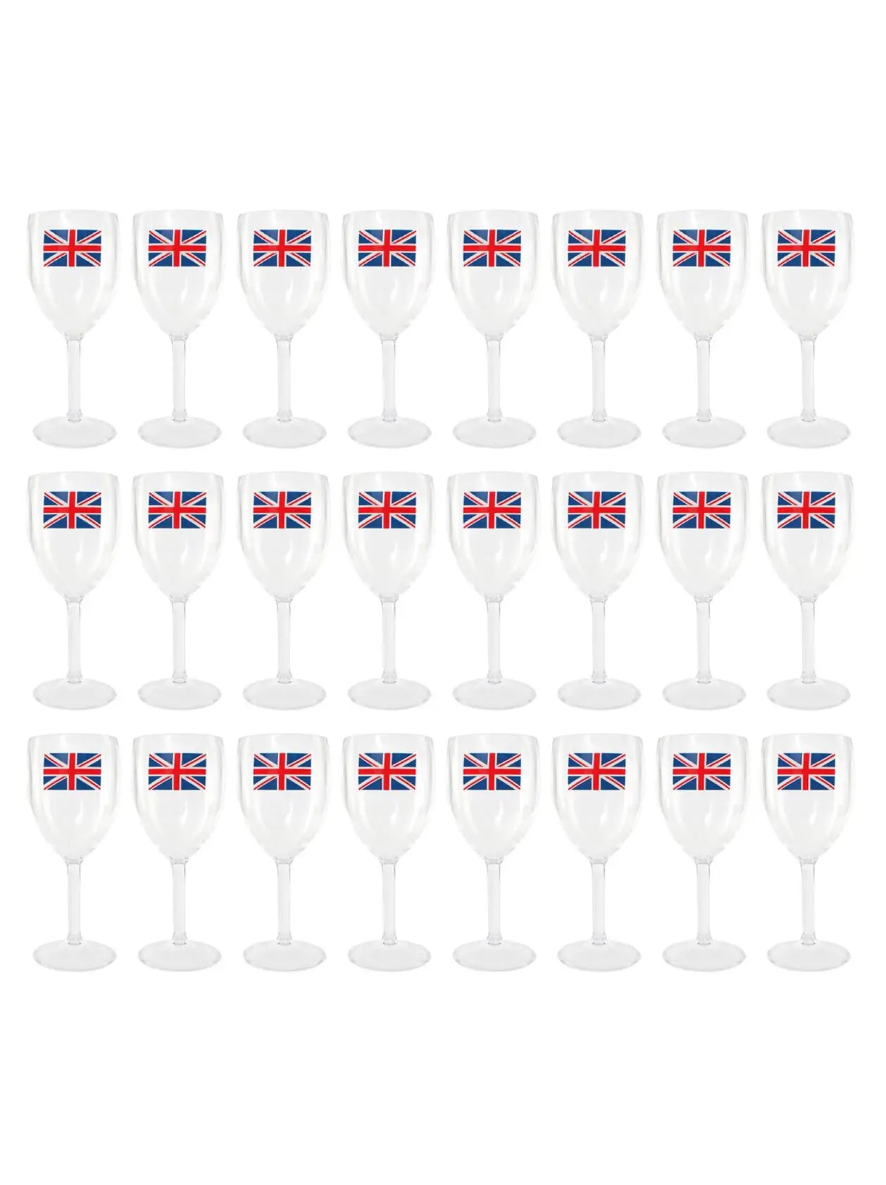 Pack of 12 Union Jack Plastic Wine Glasses – 300ml Durable Reusable Cups for Parties & Celebrations