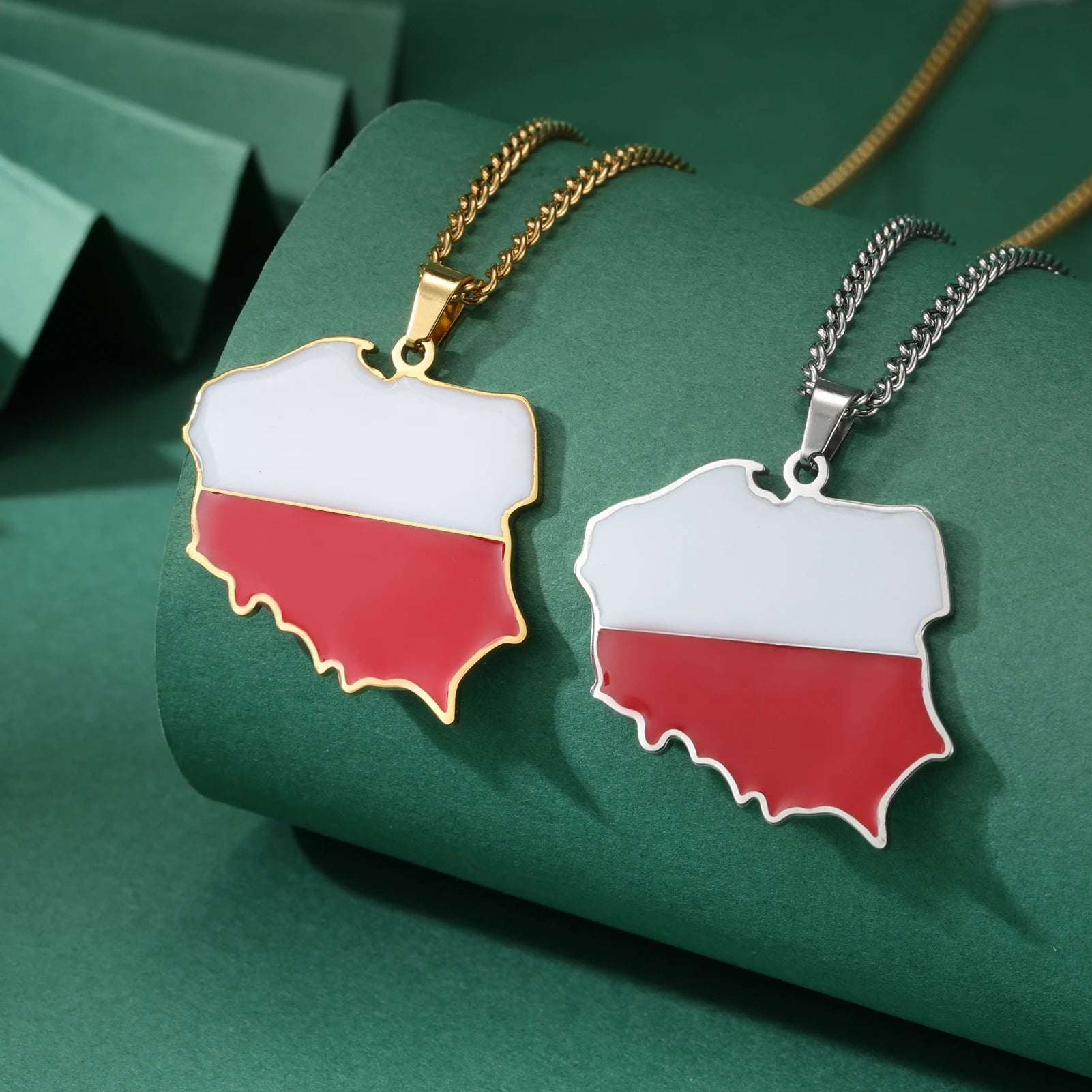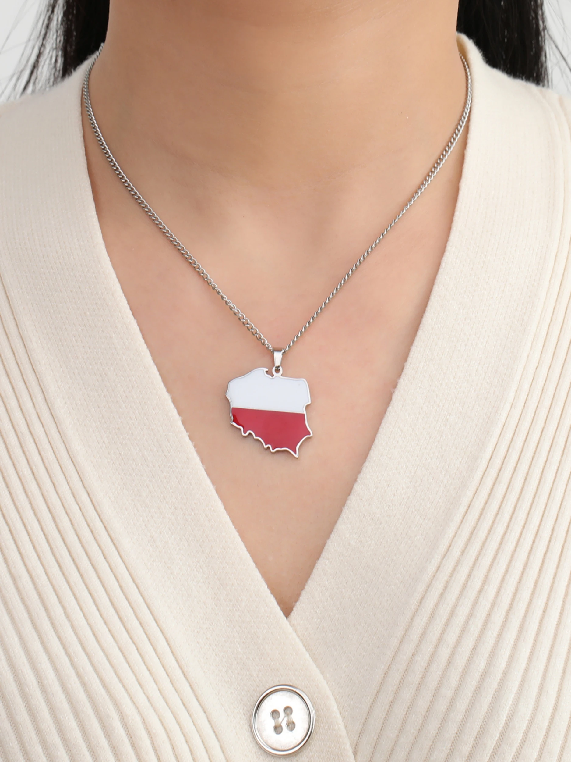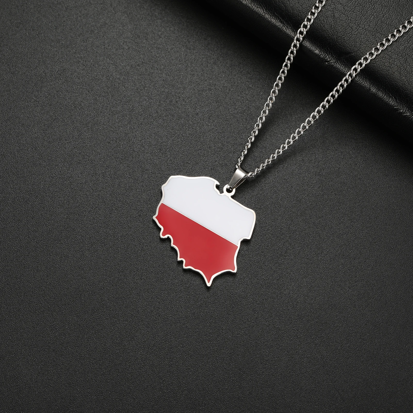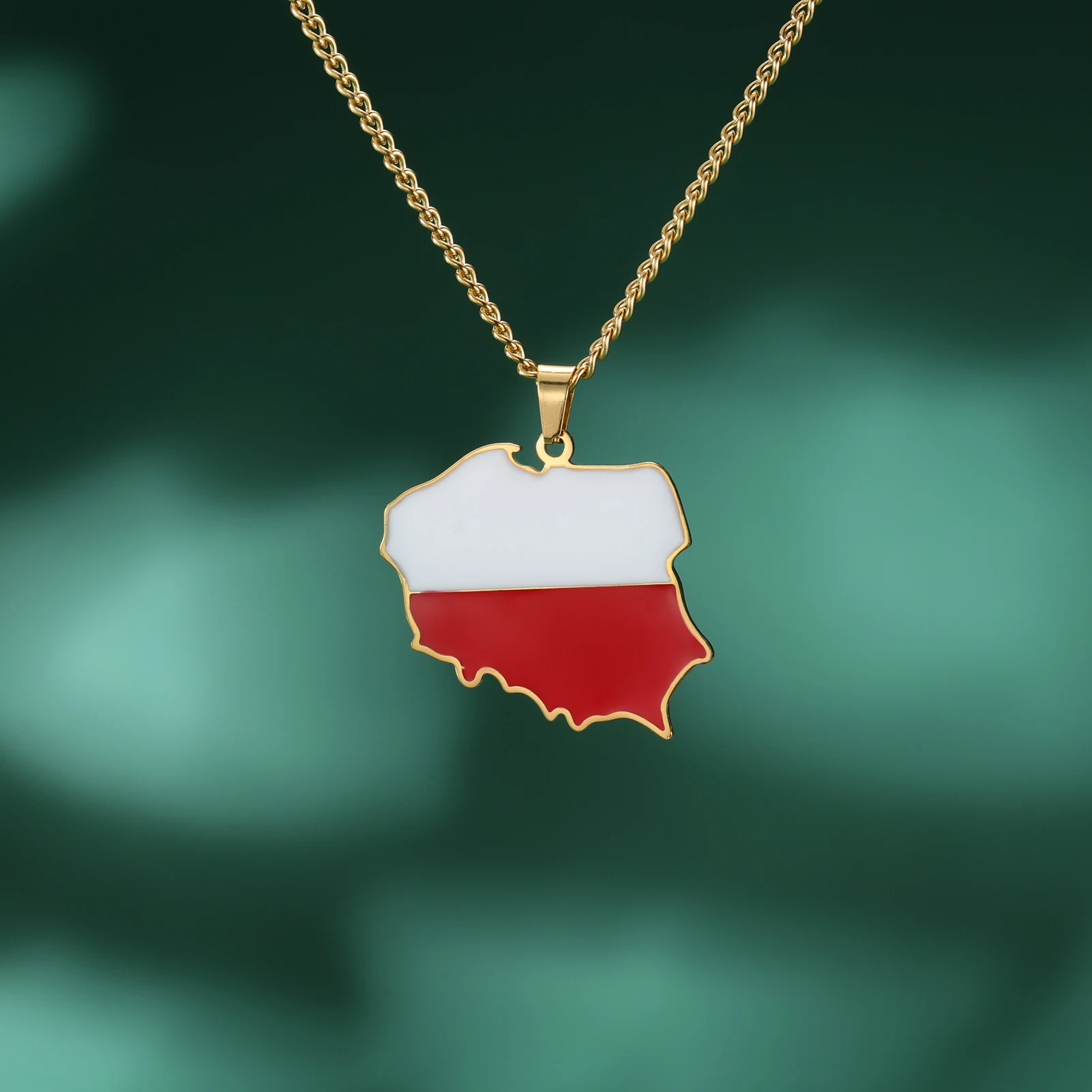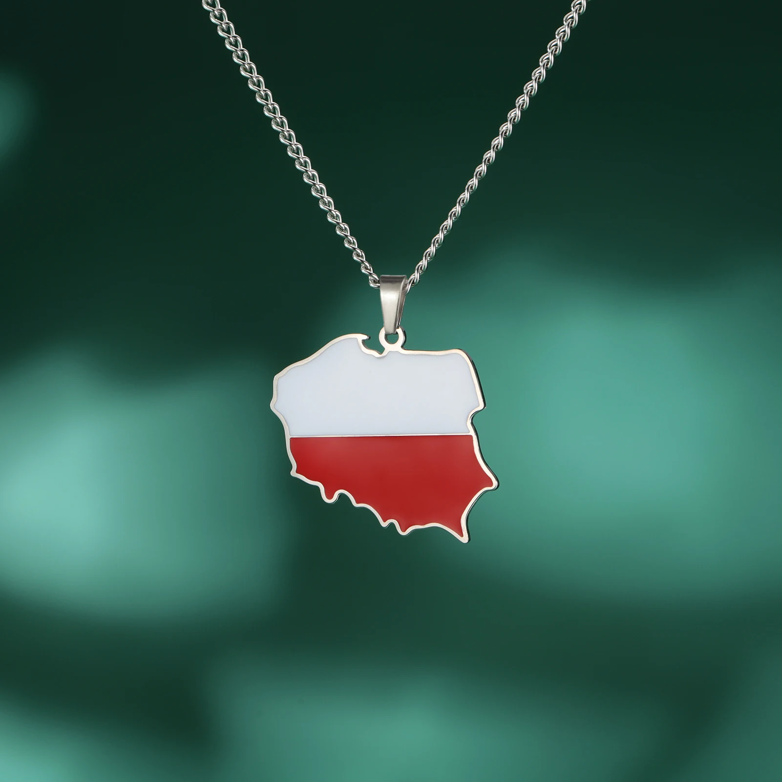 Poland Map Oil Drop Colour Pendant Necklace - Stainless Steel Flag Map Jewelry for Men & Women