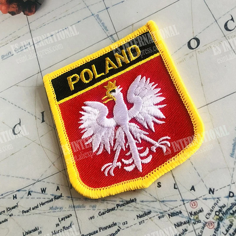 Poland Eagle Flag Embroidery Patch - Shield & Square Pin Set for Clothes & Bags