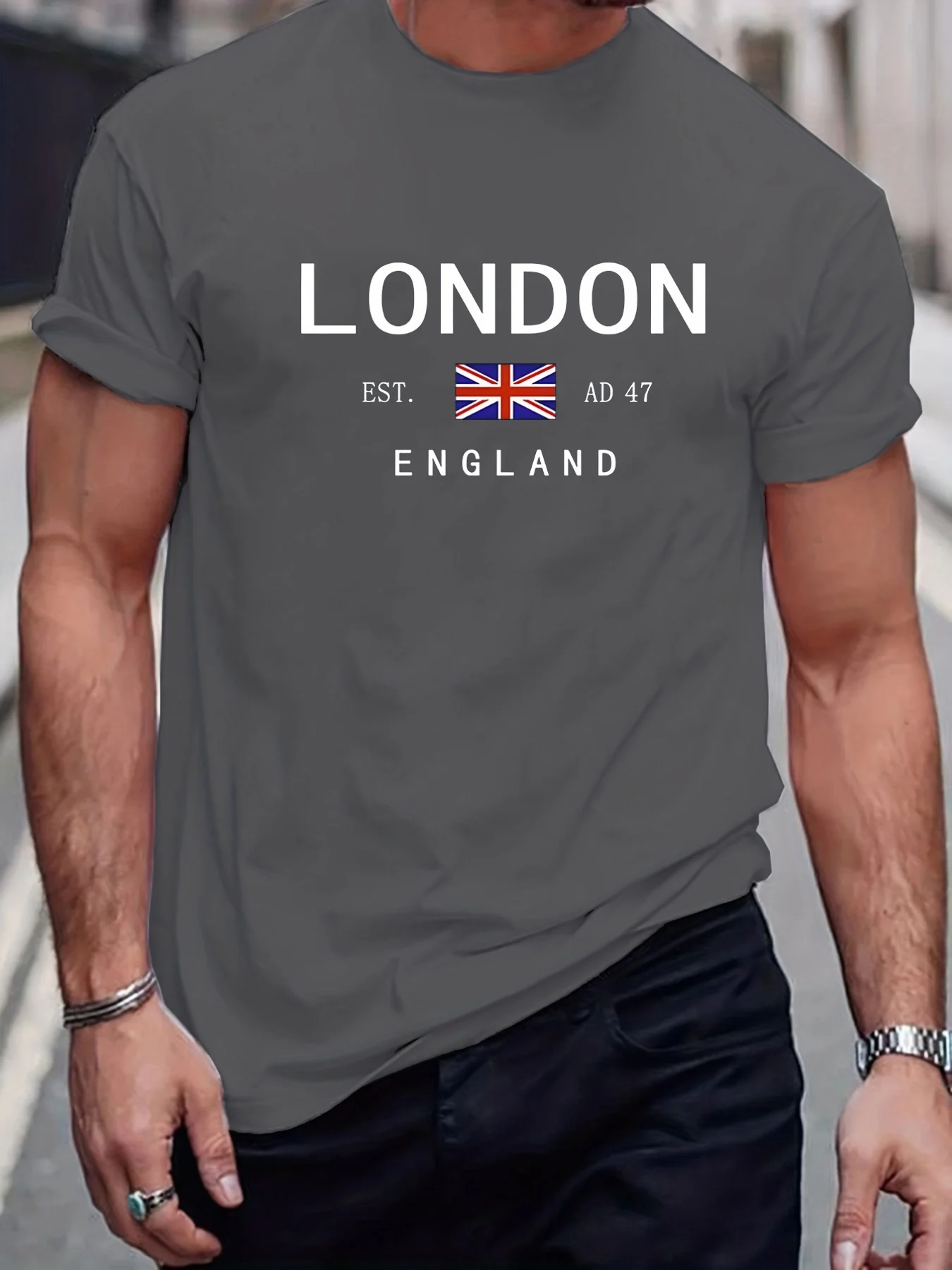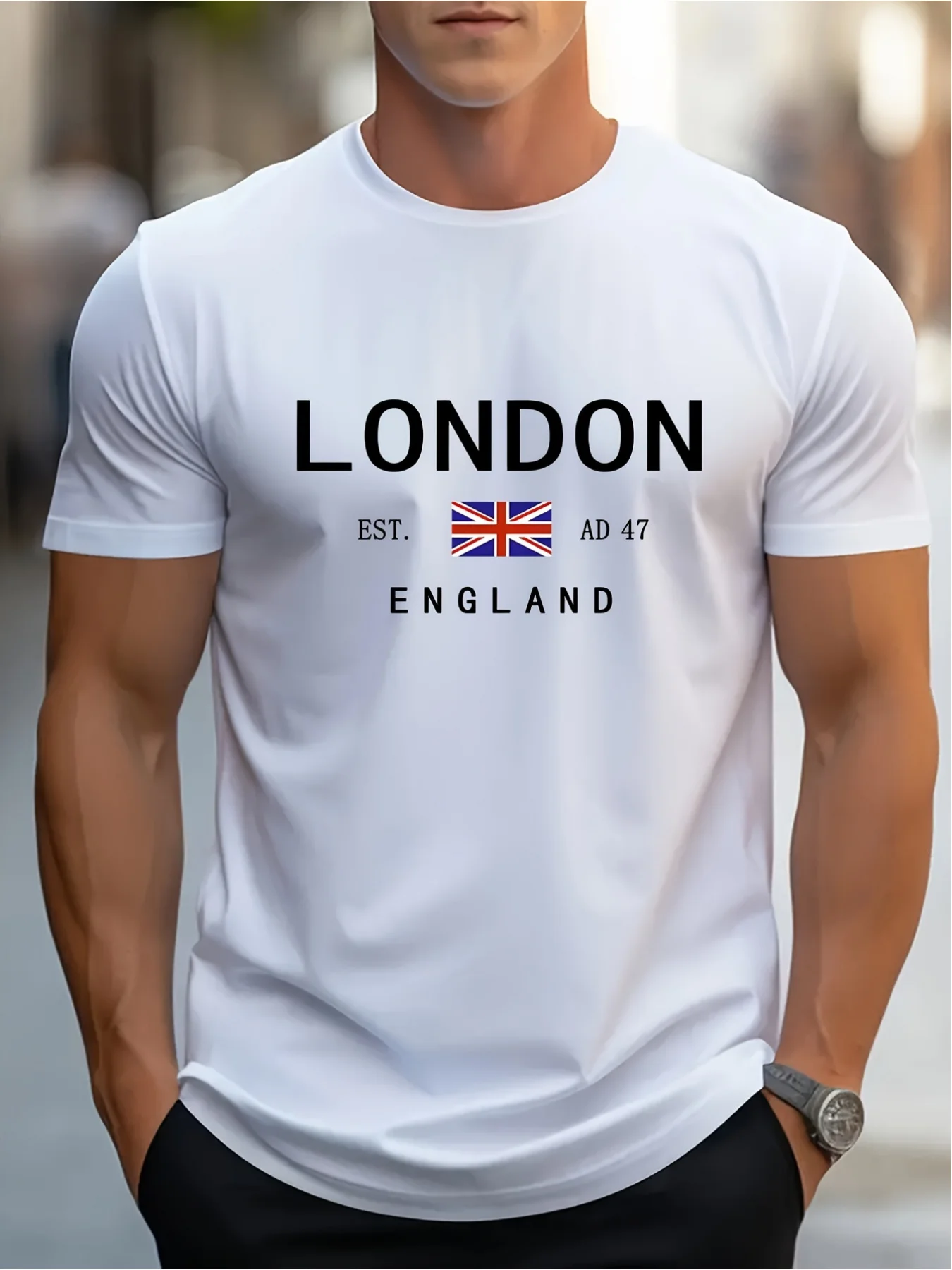 Men’s London England Cotton T-Shirt - Summer Casual Loose Round Neck Short Sleeve